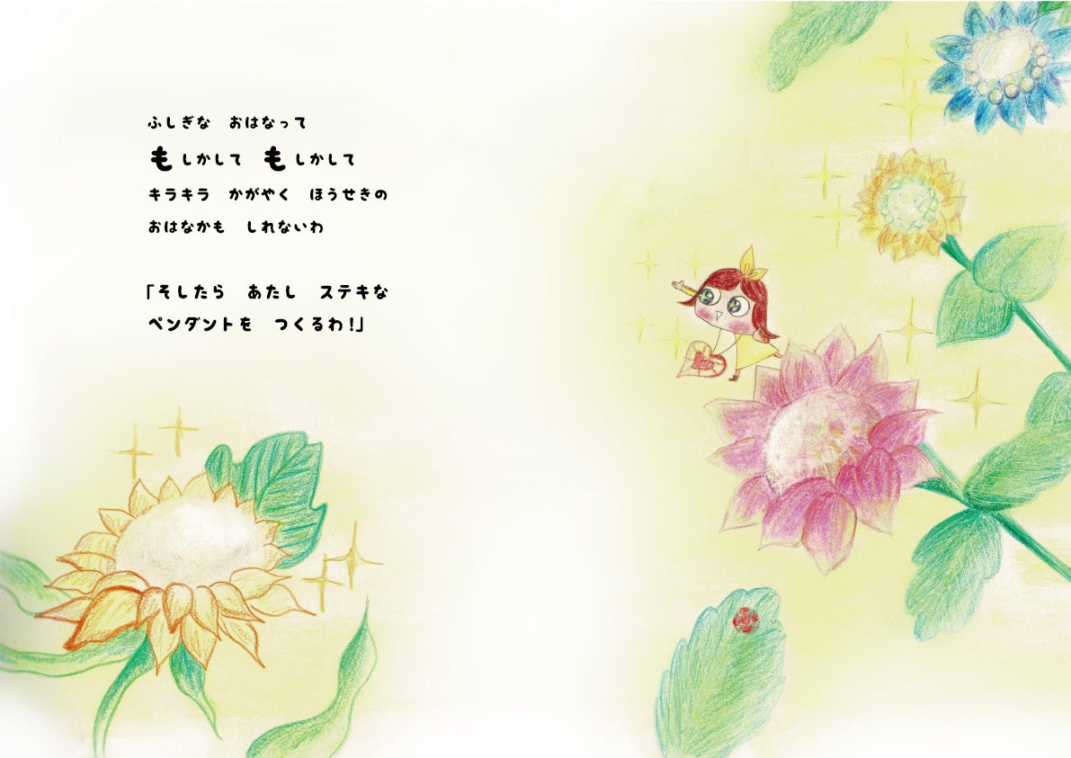 ふしぎな おはなって もしかして もしかして キラキラ かがやく ほうせきの おはなかも しれないわ 「そしたら あたし ステキな ペンダントを つくるわ」