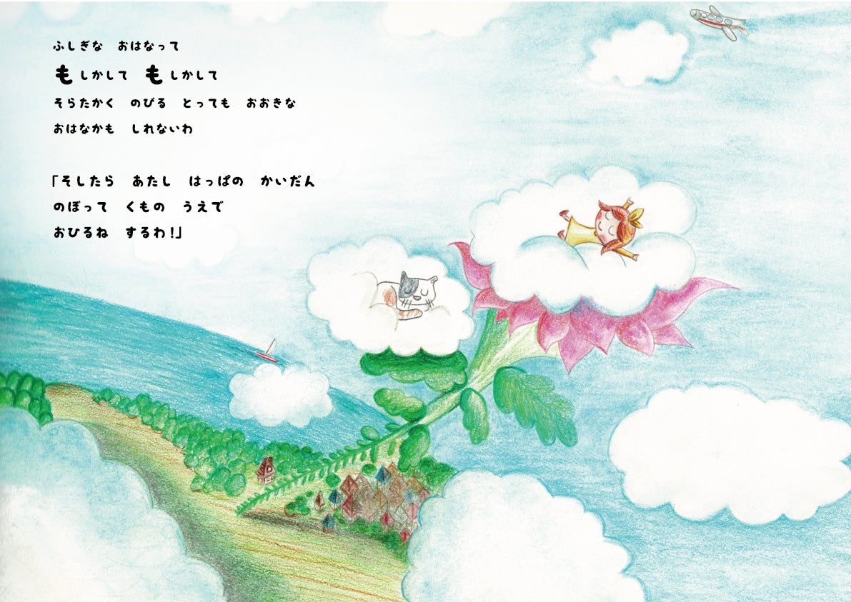 ふしぎな おはなって もしかして もしかして そらたかく のびる とっても おおきな おはなかも しれないわ