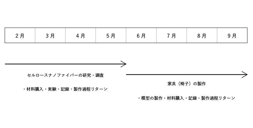 5月までかけて実験、記録を繰り返します。そして6月頃からセルロースナノファイバーを使っての椅子の製作に取り組み始め、9月いっぱいを目標に製作に取り組みます。