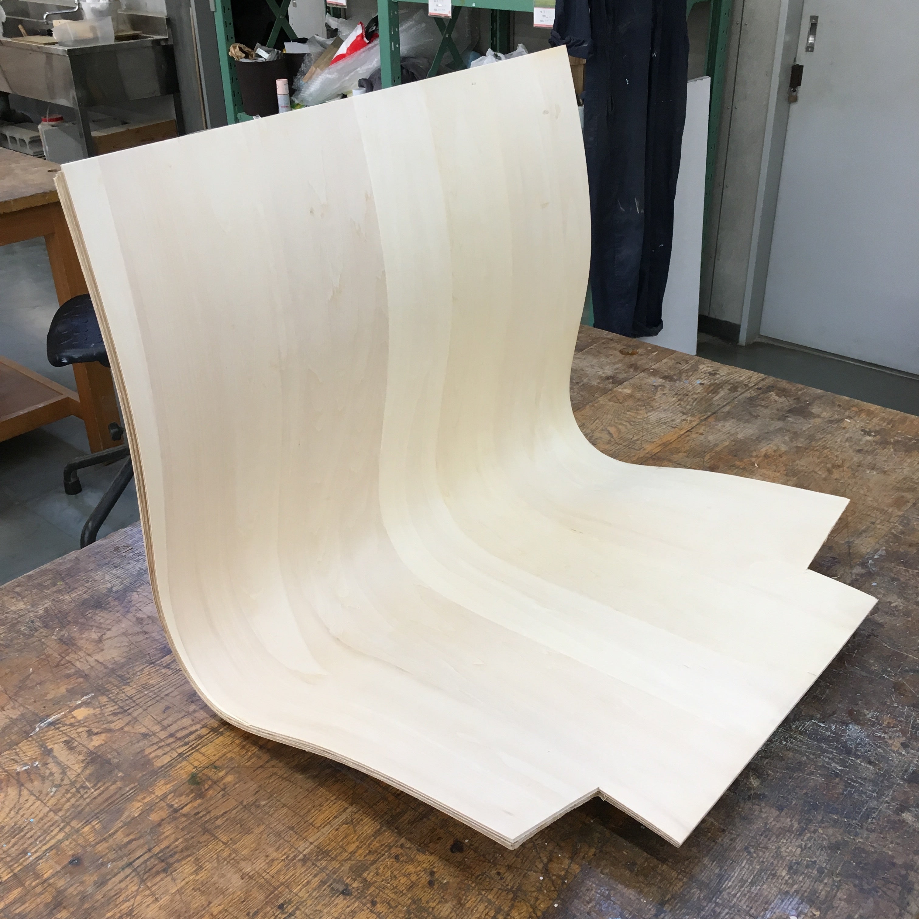 これは薄い木材を型でプレスして曲げるという加工法です。