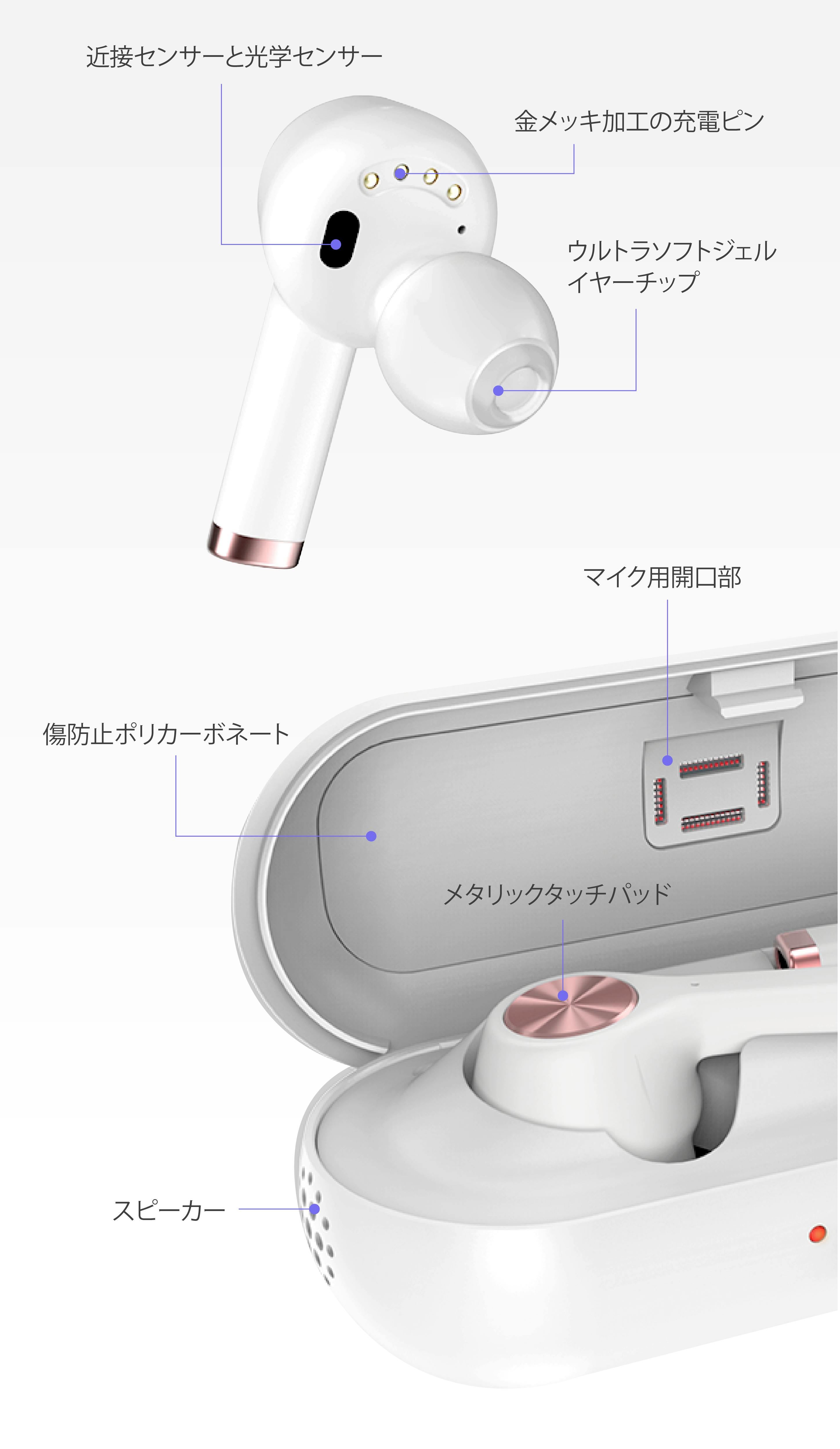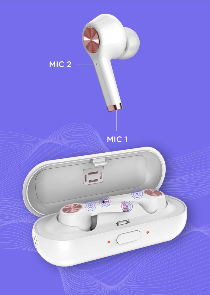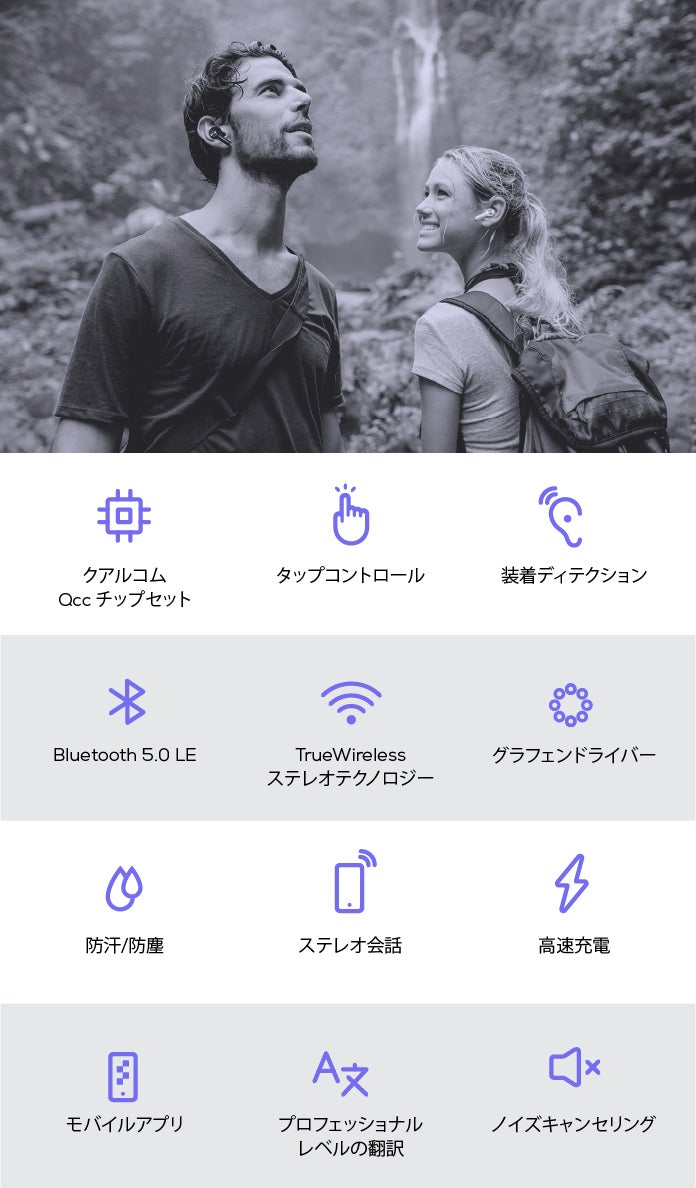 翻訳サービスと合わせて使用すると、充電ケース内の4つのマイク(両方のイヤフォンから)がマトリックスを形成し、最適な精度と感度で音声を拾い、会話の滑らかさを効果的に向上させます。