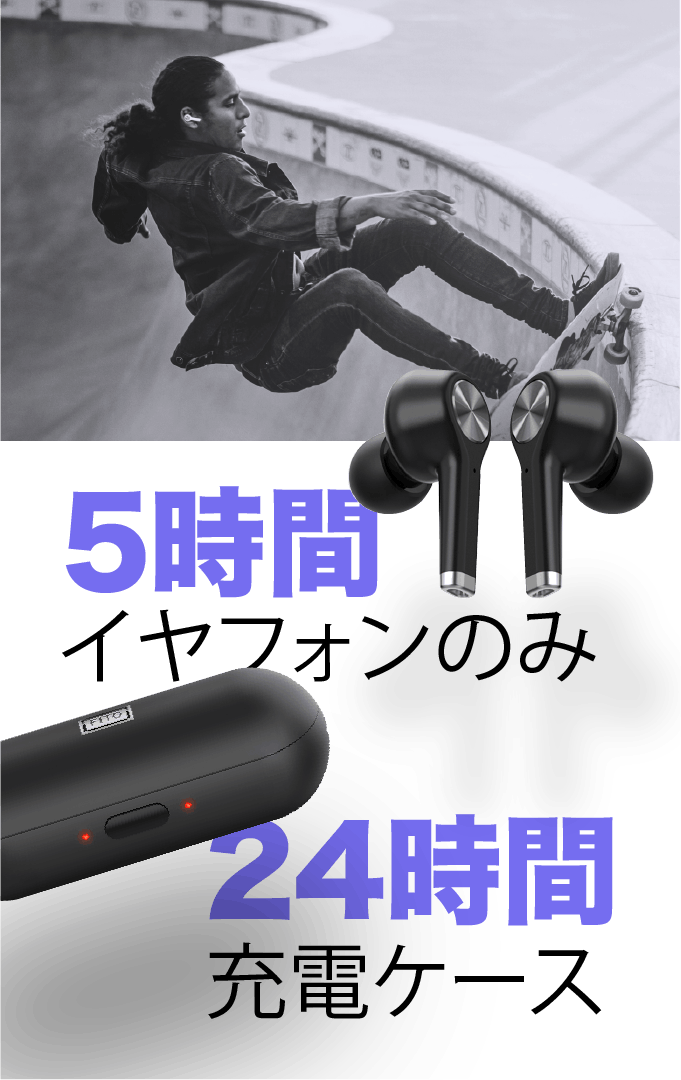 充電ケースで、イヤフォンを素早く安全に充電できます。 FITO Tap Proは、5時間以上の音楽再生だけでなく、全体的な電池寿命を延ばします。 同じバッテリー容量の他のBluetooth 5.0イヤフォンと比べて、FITO Tap Proは充電する頻度が少なくてすみます。