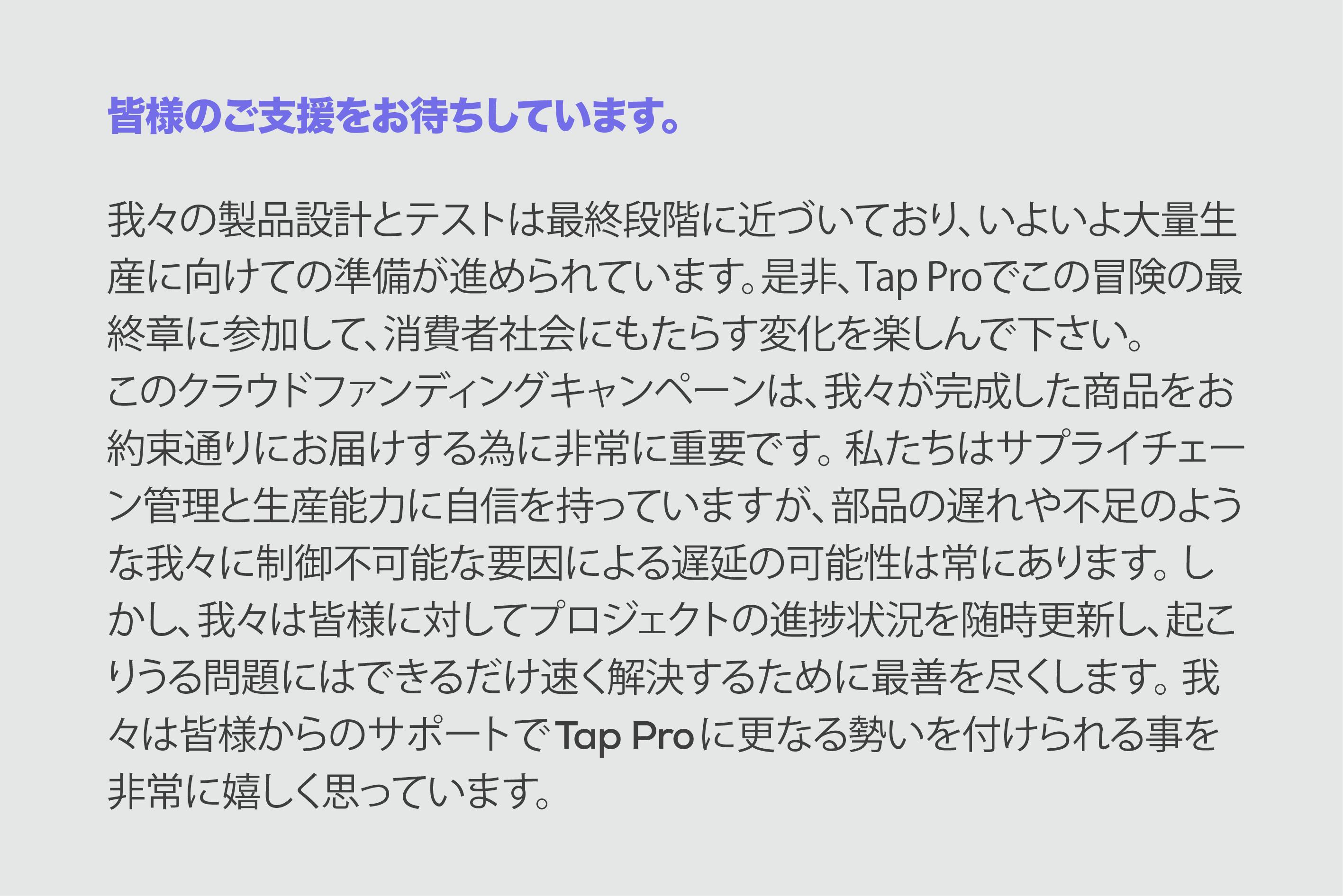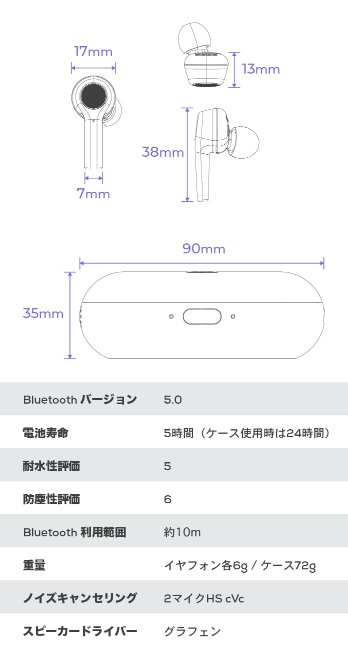 Tap Proはクアルコム QCC3026 チップセットを搭載しています。業界で最も先進的なBluetoothチップセットシリーズとして、QCCチップセットは、Bluetooth 5.0 LE、特にTrueWireless用に設計された高度な技術を特長としています。 *QCC3026チップセットの詳細