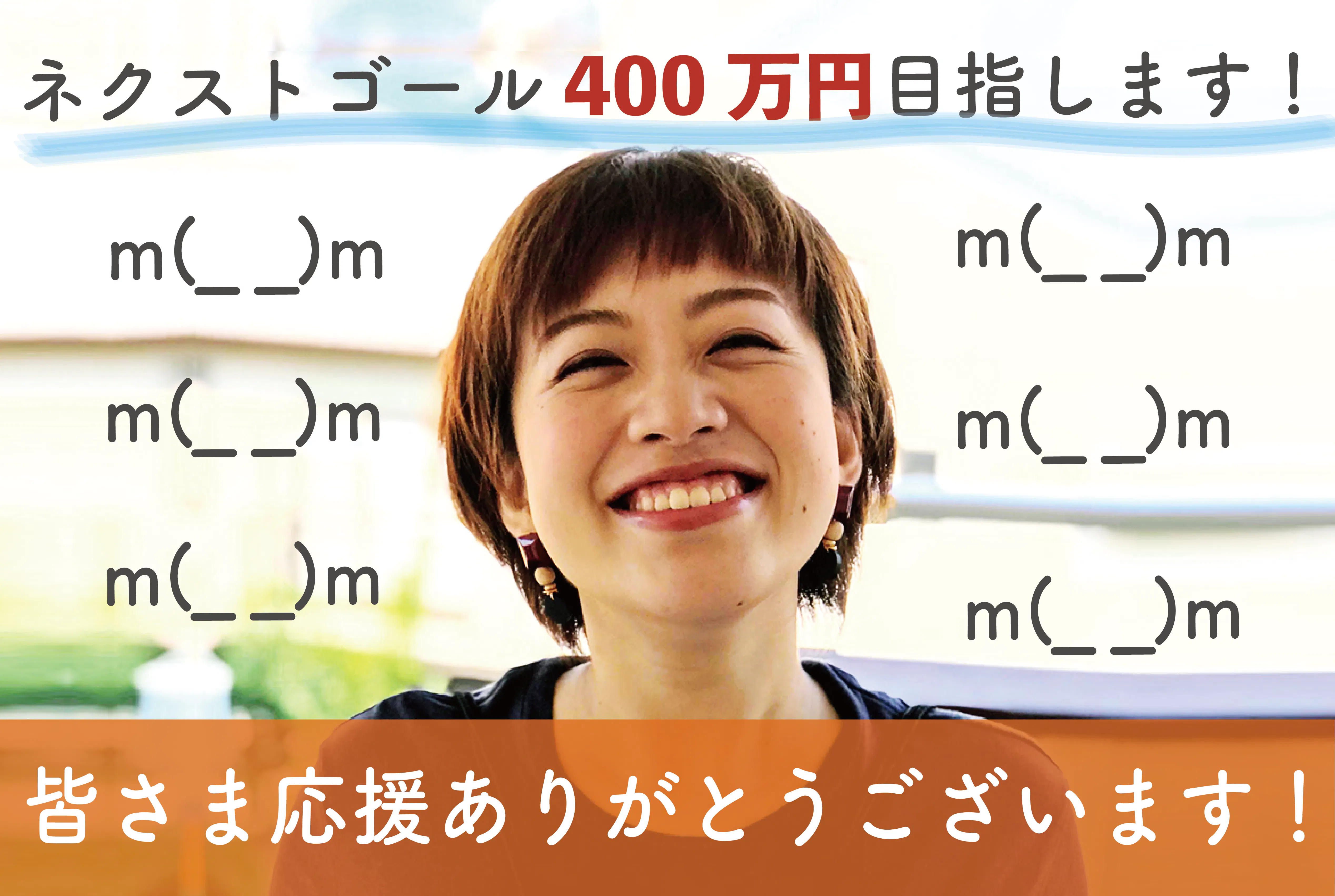 正直、こんなに支援していただけるとは想像だにしておりませんでした。支援してくれるかもしれない身内に声をかけたとしても、当初の見積もりでは「20万円も集まらないかも・・?(汗)」という感じでした。