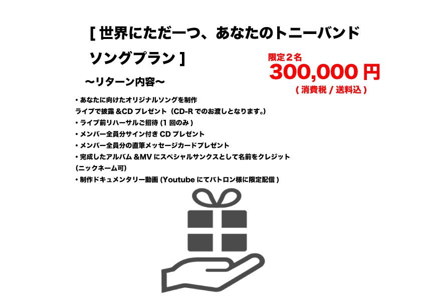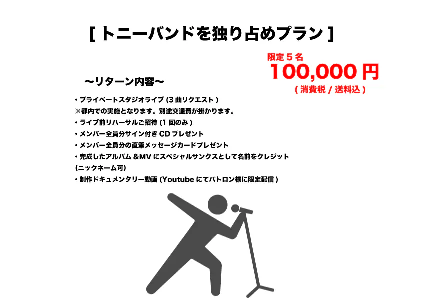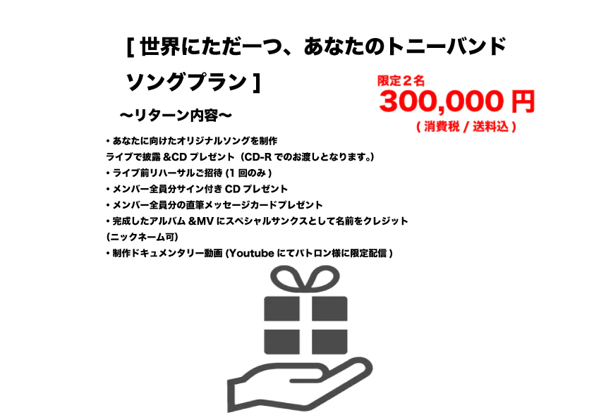このプロジェクトを通して一人でも多くの方にトニーバンドのサウンドと魅力を伝え、広めて行きたいと思っています!!