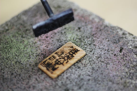 きれいにやすりで削って「雄勝神輿」の焼印を押して、出来あがり。
