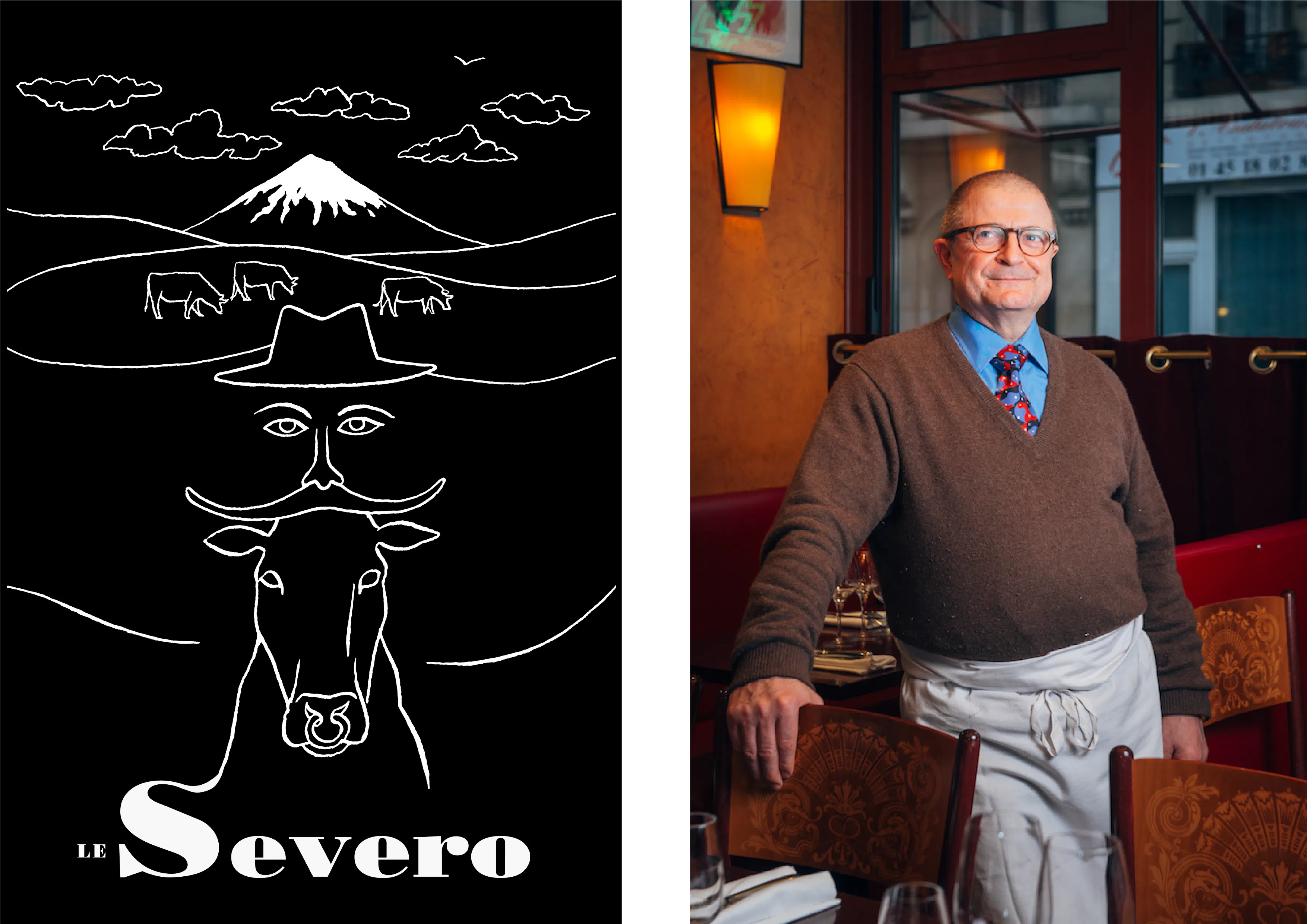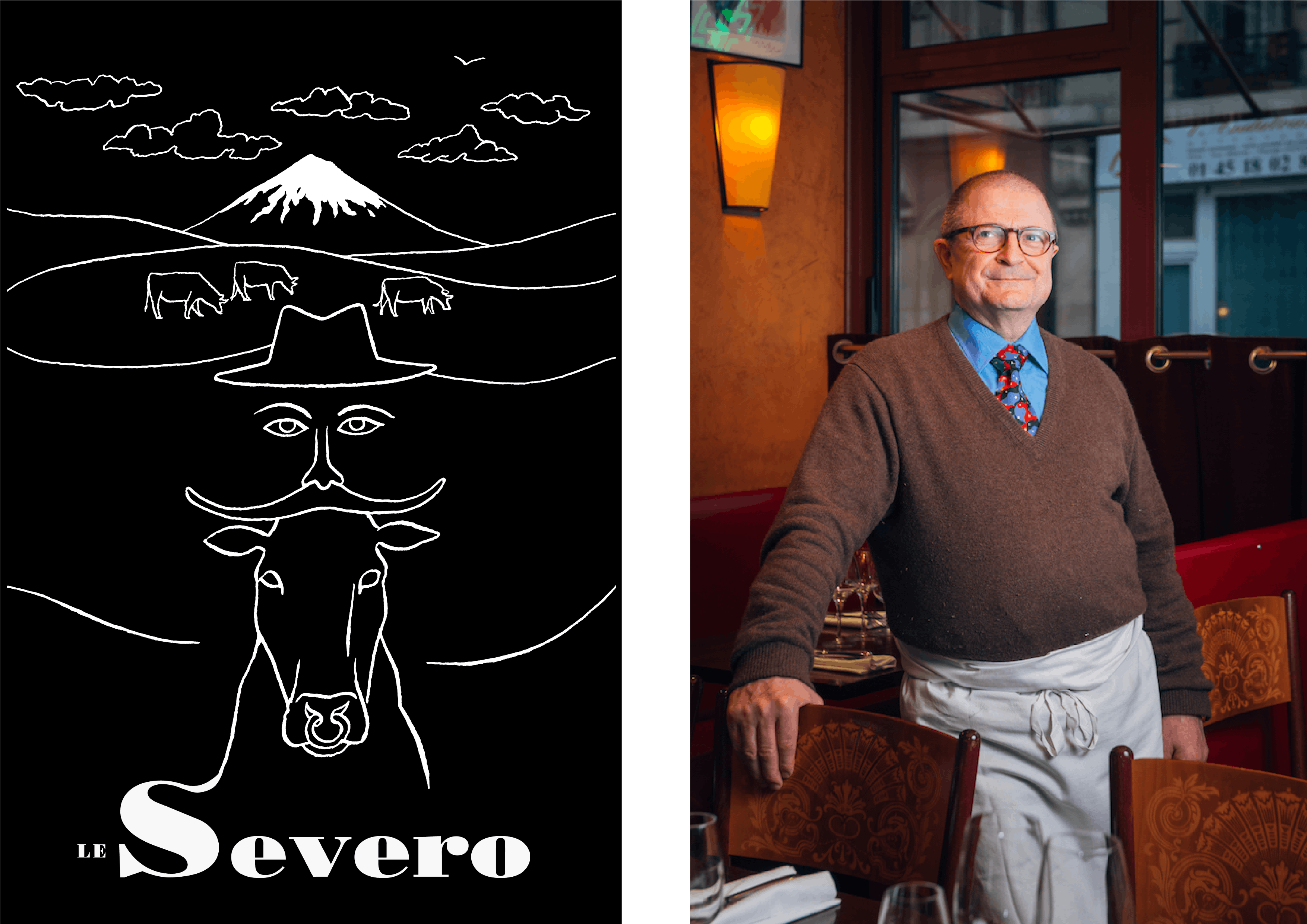 酪農家のもとに生まれ、ブーシェ(精肉師)としてキャリアをスタートさせたル・セヴェロの創業者ウィリアム・ベルネは、数ある牛の中から熟成に適した牛を見定め、それぞれの持ち味を生かしながら、牛肉個々の熟成状態を見極めていく目利き力と経験に裏打ちされた技術力で、パリ随一の熟成肉専門ビストロとして、30年以上経った今もなお連日多くのパリジャン、世界中の肉好きが集う熟成肉界のパイオニアです。