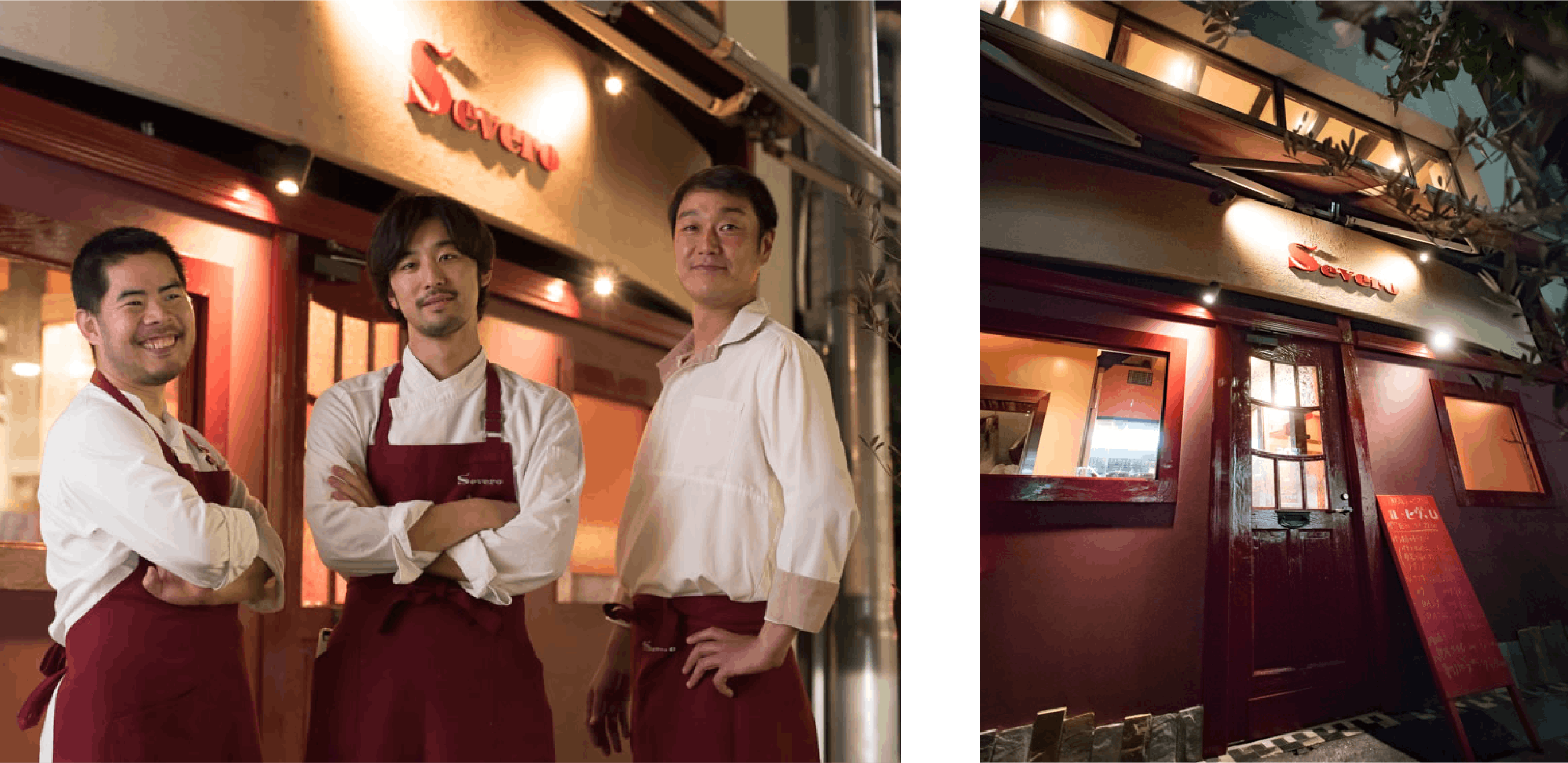 同店舗は、今はなきパリLE SEVERO本店の近くにありました「SEVERO BIS」で4年間シェフを任されていた 齊田 武がシェフを務めております。 その当時より、熟成牛のステーキはもちろん、魚料理にも定評があり、パリ本店とは少し違った楽しみ方ができるお店として、パリジャンで賑わうお店でした。「皆様にもっと楽しくカジュアルにビストロを楽しんで頂きたい」 という思いを胸に店舗を切り盛りしてます。 熟成牛のステーキ以外に鶏肉や鴨肉などの様々な肉料理や当初評判の高かった魚料理、人気メニューの”タルタル ステーキ”など、コースのアレンジやアラカルトでもご用意しております。 ランチタイムでは、よりお得な価格でそのエスプリを楽しむことができます。