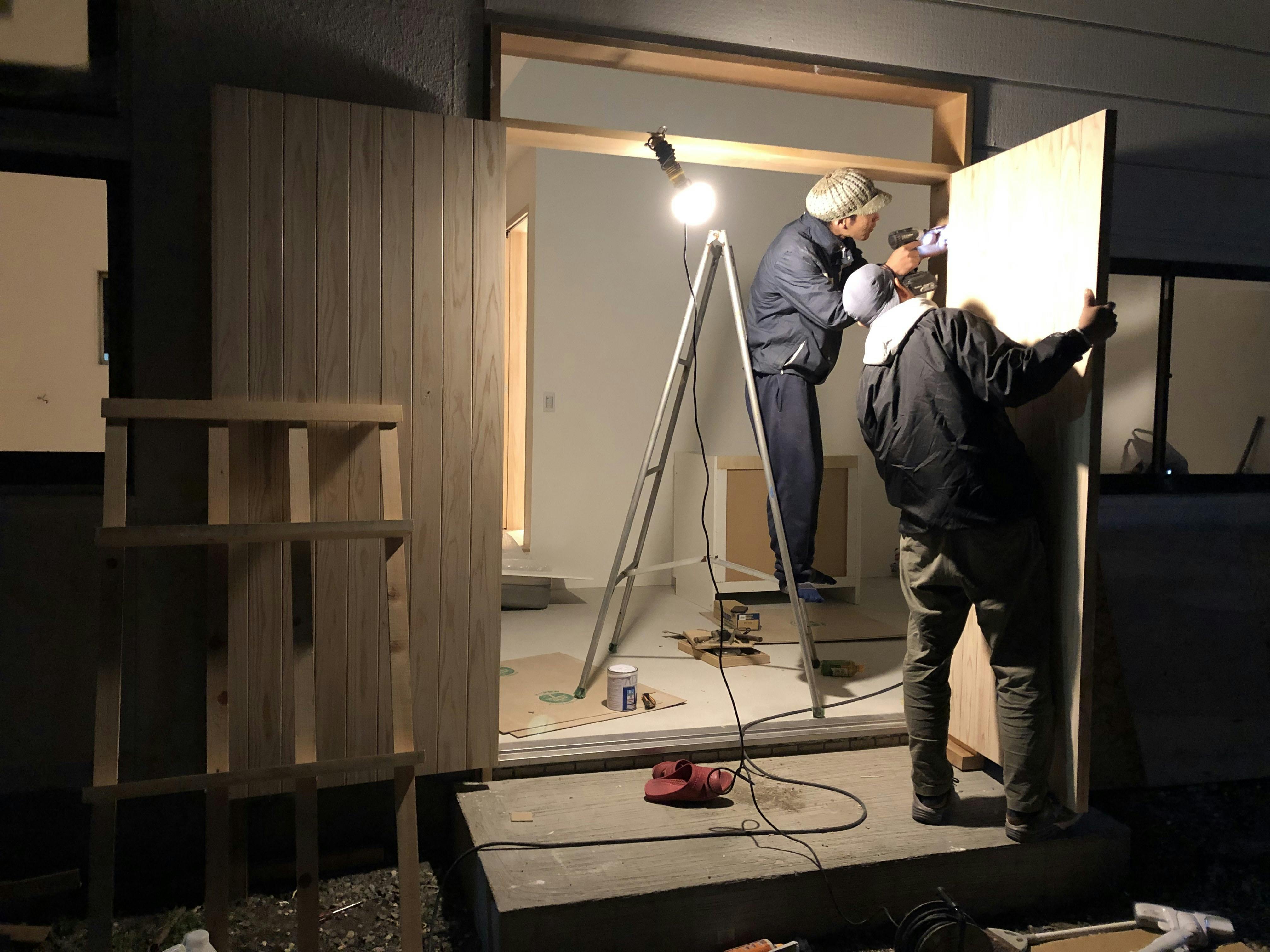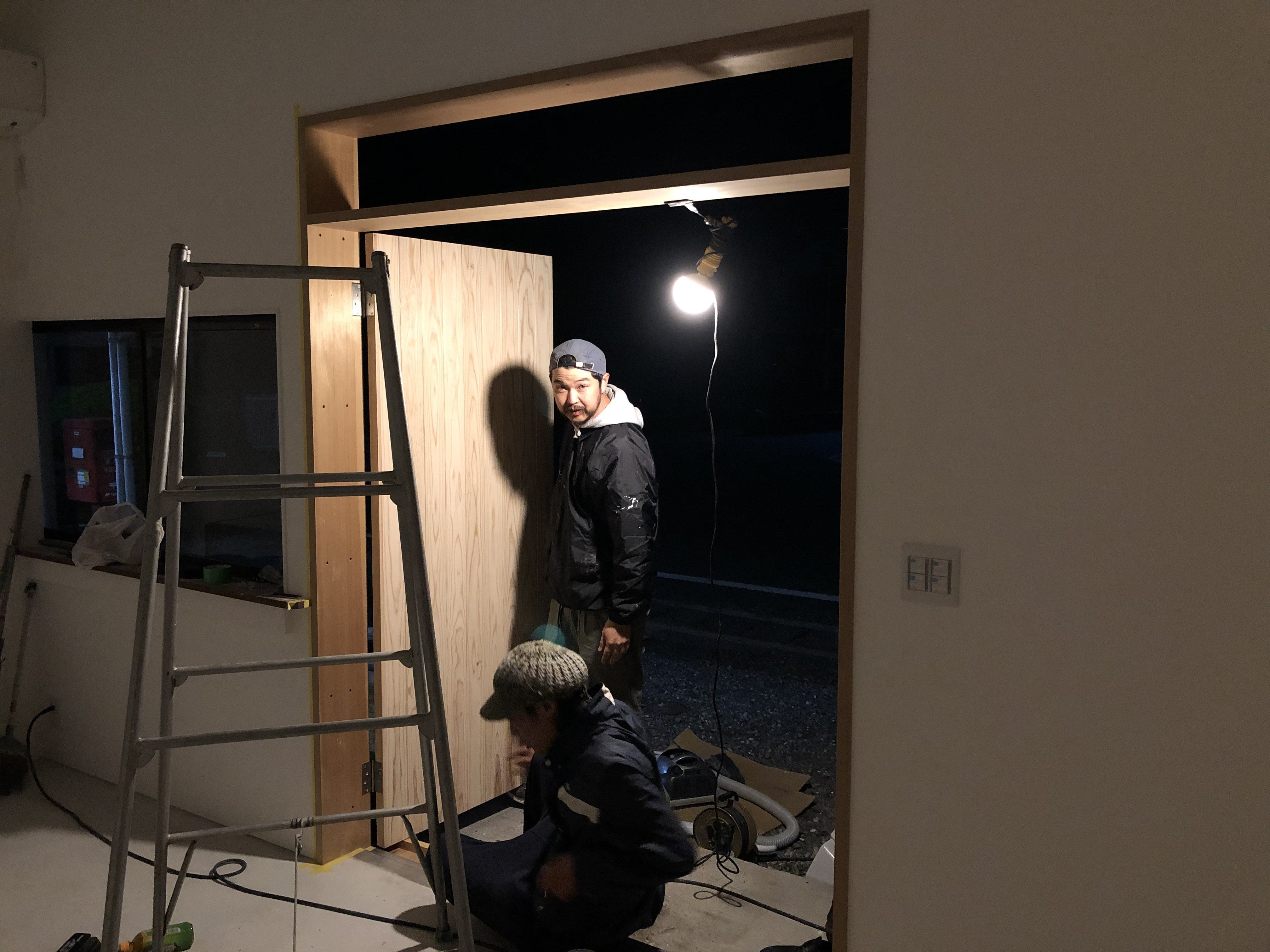 本日は夜を徹して扉の設置作業を行っております。