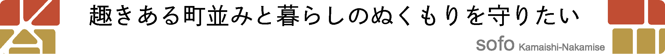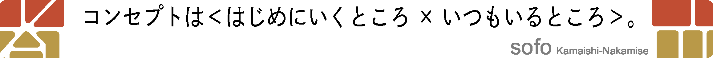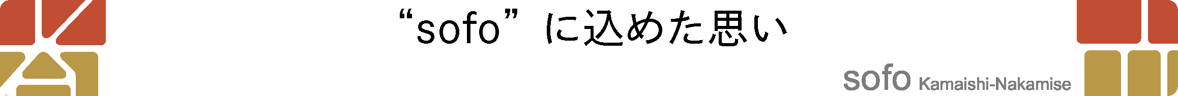 赭は仲見世の屋根の赤土の色で万葉集の時代からの伝統的な色。観音様と釜石大観音仲見世商店街が作り出す景観を大切にし創建当時の思いを受け継ぎたいという思いで名づけました。さらに倉庫街をリノベーションしニューヨークの新しい文化の発信地となったSoHoからも由来を取っています。