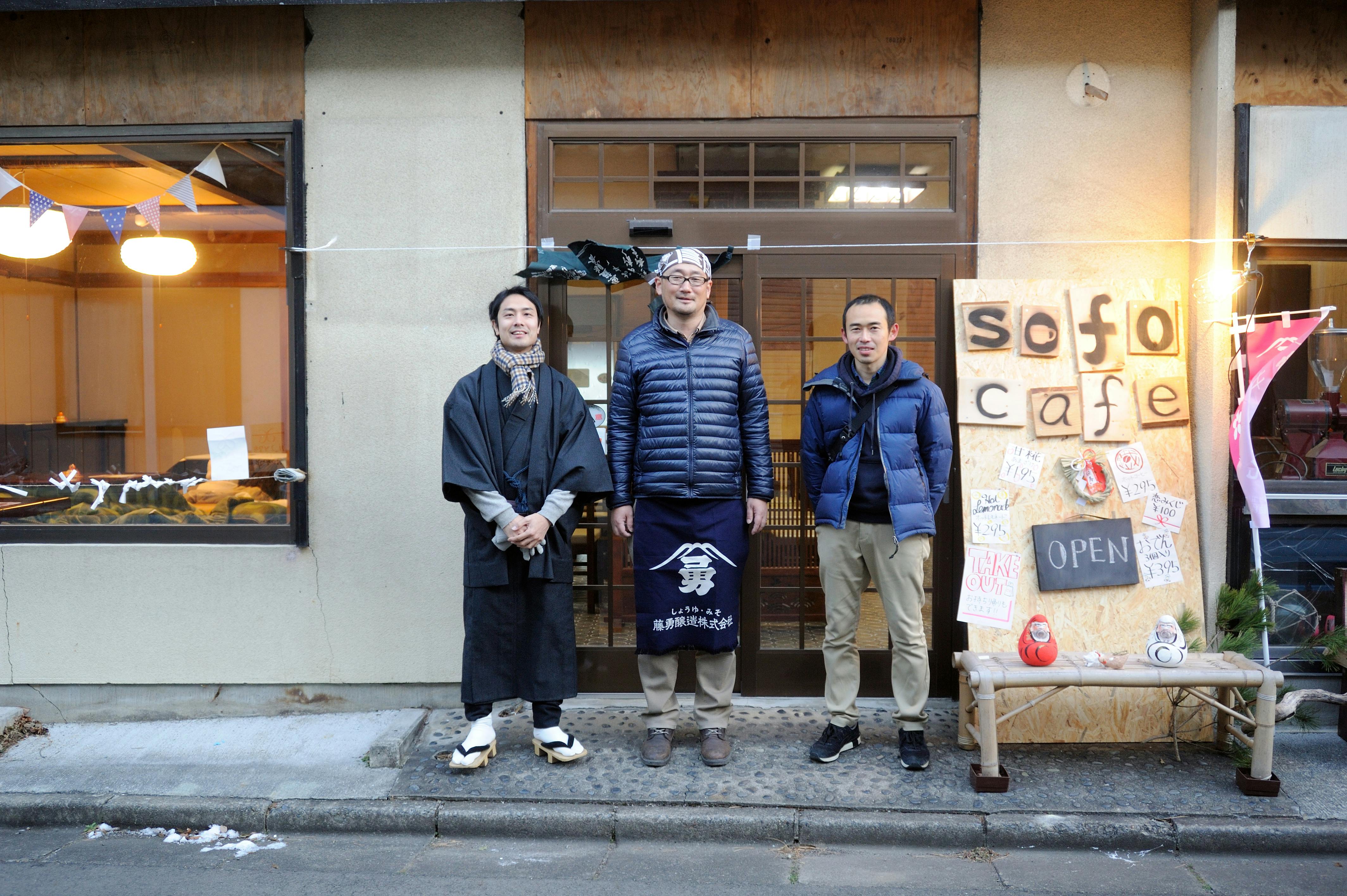 今年のお正月には「プレプレオープン」と銘打って、大晦日の夜から元日のお昼まで、カフェ予定の元お蕎麦屋さんにこたつなどを持ち込ませてもらい、コーヒーやレモネード、地元の醸造会社の「甘糀」(甘酒)などを提供。若い世代を中心ににぎわう空間を見て、さらにカフェに人が集うイメージが湧いてきました。