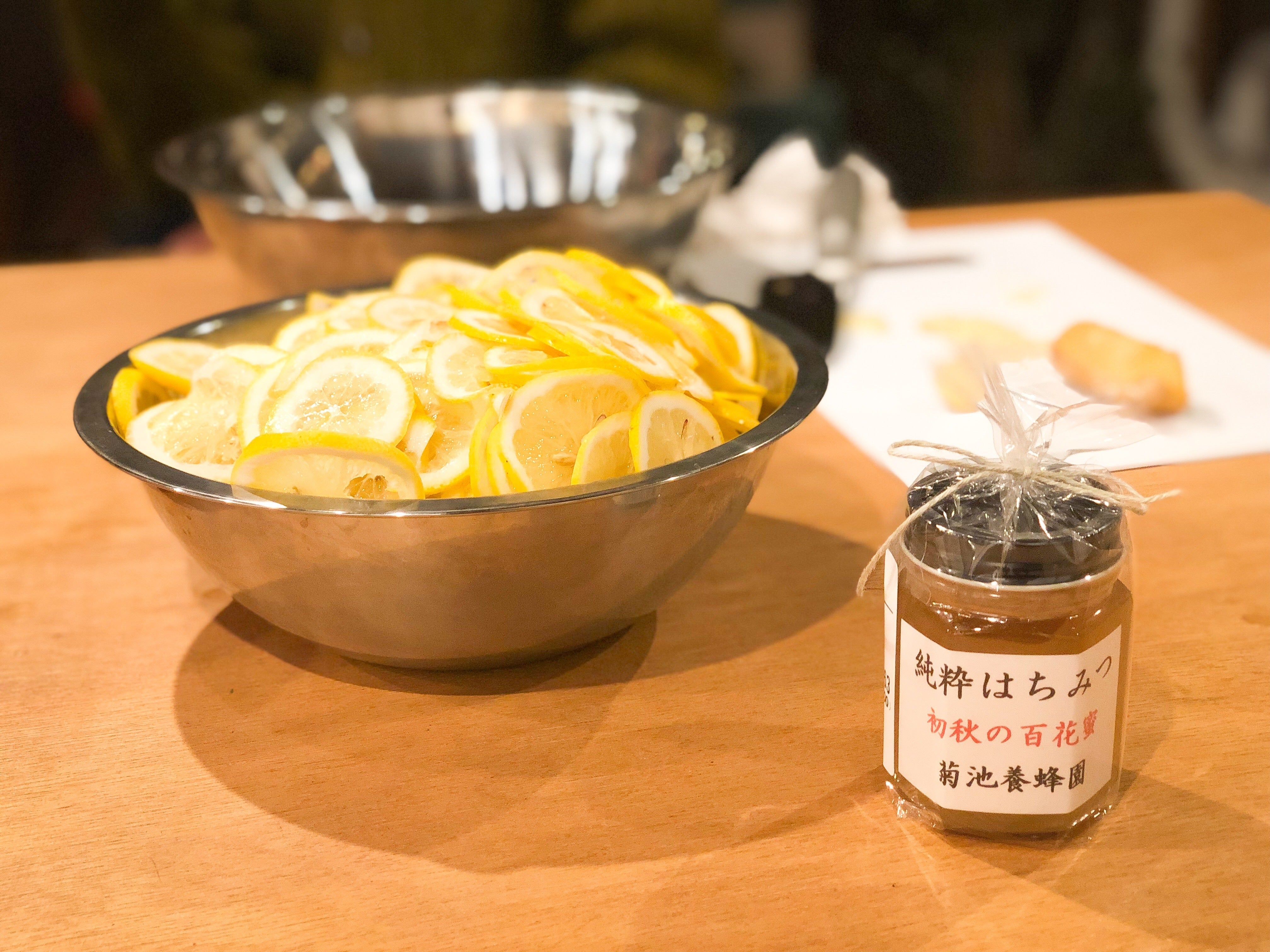 ▼前日に仕込んだ広島県産レモンと隣町大槌町のはちみつ