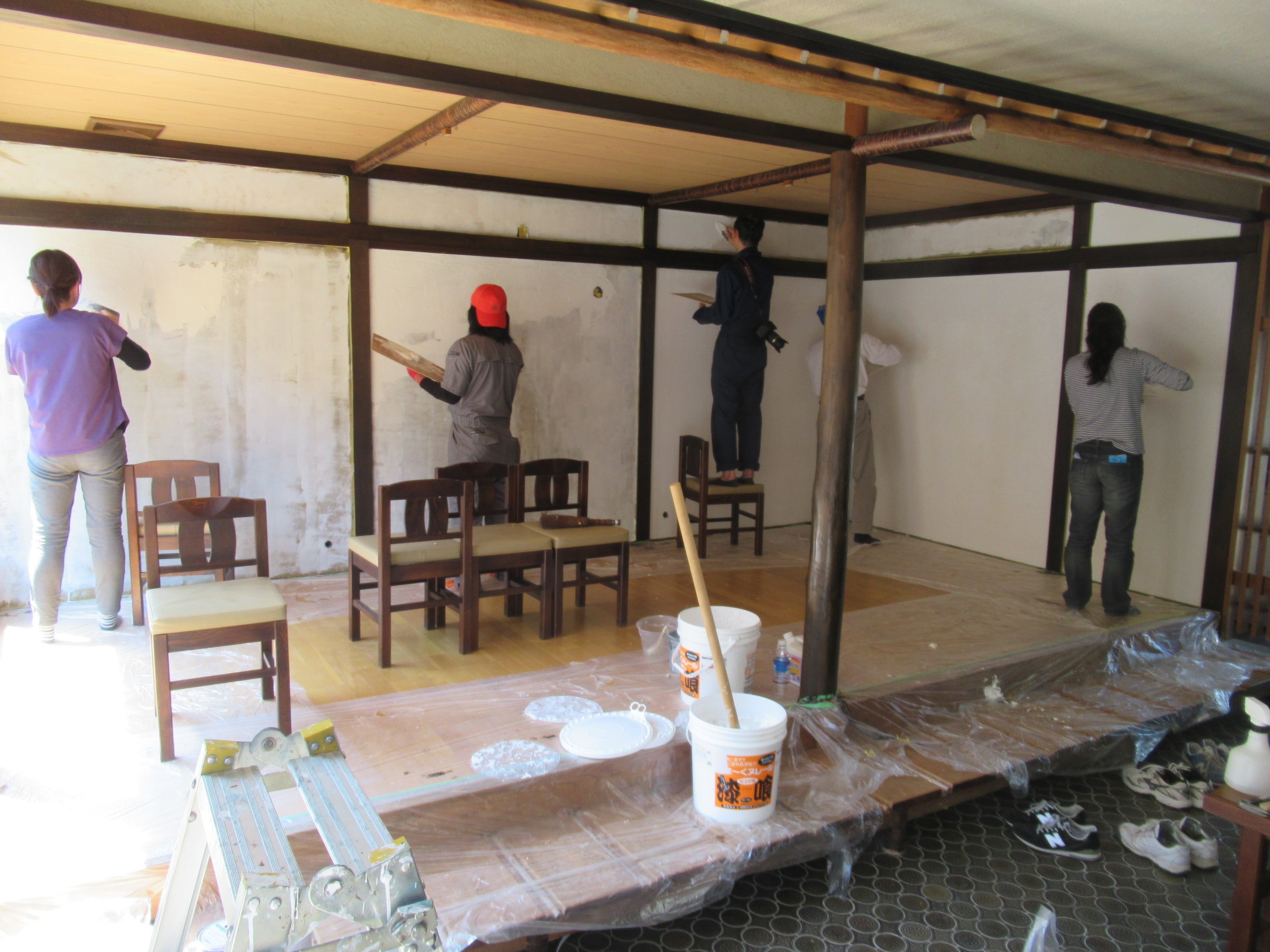 3日目も引き続き対策を行った後、再び漆喰塗り作業を行い、計画していた範囲の塗り替えが完了!