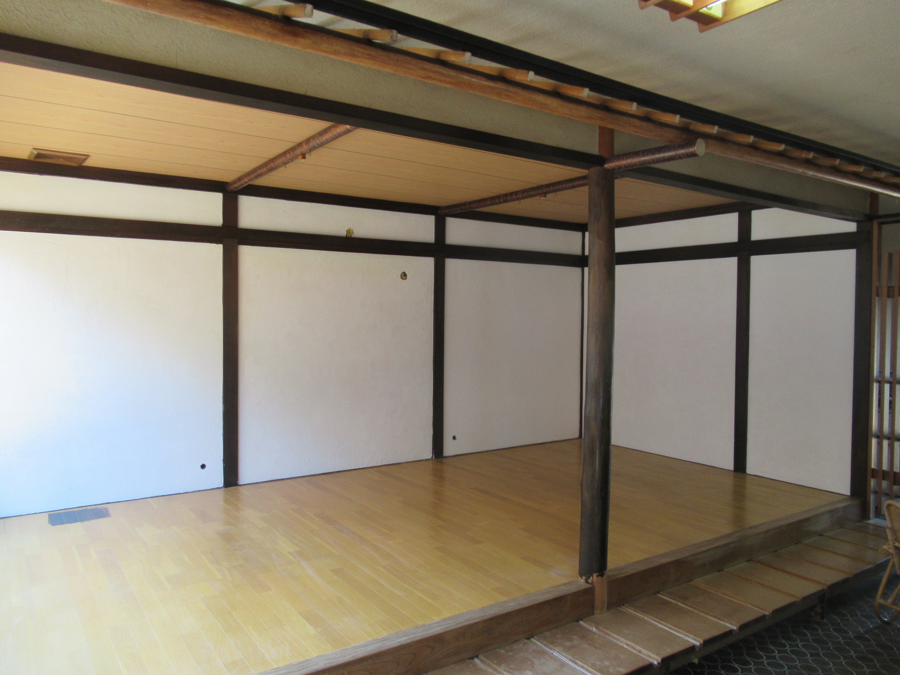 もともと純和風だったインテリアをイメージチェンジして古民家風にするため、柱と壁のしっくい塗り替えを計画。