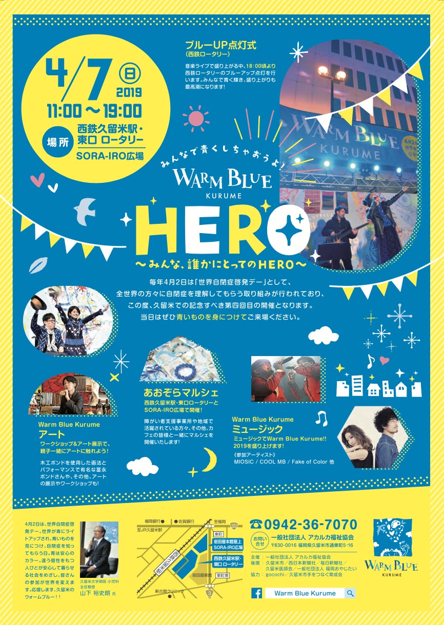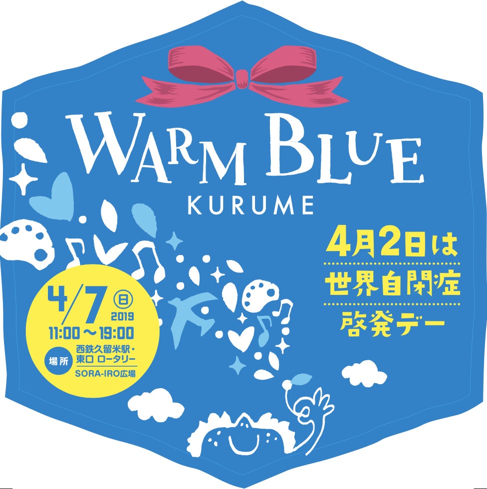 第3回目となる、今回の「Warm Blue Kurume 2019」のイベントを通して、より多くのかたに「自閉症」の事の知っていただき、自閉症のある人を含めたすべての人が過ごしやすい世界を実現できればと思っております。