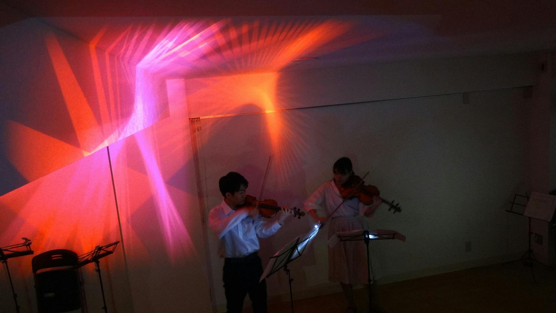 音によって演奏者や空間が色に染まり、音に反応して変化をします。