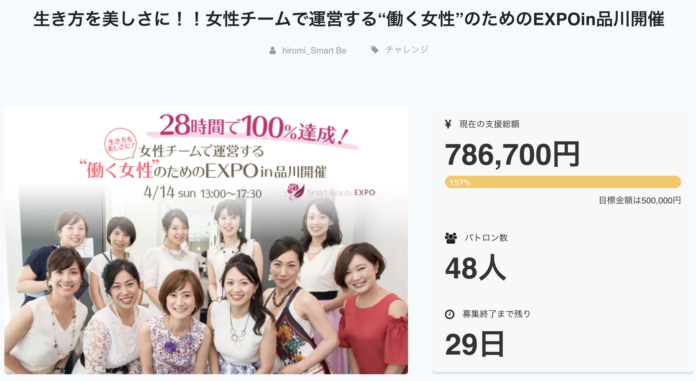 伊藤宏美、まだまだチャレンジしております!!先ほど、CAMPFIREの画面をのぞいたら…なんとぉ〜!!トップ画面にSmart Beauty EXPOが載っているではないかぁ〜!!!!みなさまがたくさん応援くださったおかげです!ありがとうございます〜(涙)そして!そして!!!【240%達成】できました〜 \(^_^)/本当に本当に嬉しいです~(涙)ありがとうございます!!いま人気のリターンはこちら♡『スタンド花!!』なんと、残り8人です(^^)▼▼▼会場にたくさんお花があると女子としてはとっても嬉しい~(^-^)だって、女性が集まるEXPOだから華やかになるのにお花は必須ですよね!お花があるとお客様も足を止めてくださるからご支援くださった方のお名前もちゃんとみてくれますし!!やっぱりお花ってすごい ♬クラファン終了まであと13日!!みなさまのご支援に日々感謝しながら伊藤はまだまだ頑張りま~す!!!ぜひ!応援いただけたら嬉しいです(^-^)