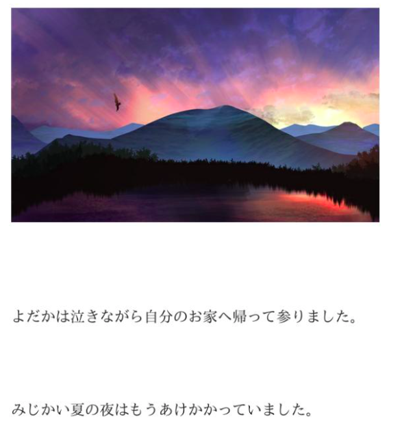 「よだかの星」「赤ずきんちゃん」など、過去の名著をチャットノベルとしてのリメイクに携わらせて頂きました。名著とは、世代を超え多くの人たちに愛され続けてきた作品です。これまで版を重ね様々な形で出版されてきましたが、当然のことながら、内容は全く同じものとなります。旧字体から新字体に修正されることはあっても、元の文章に手が加えられることはありません。