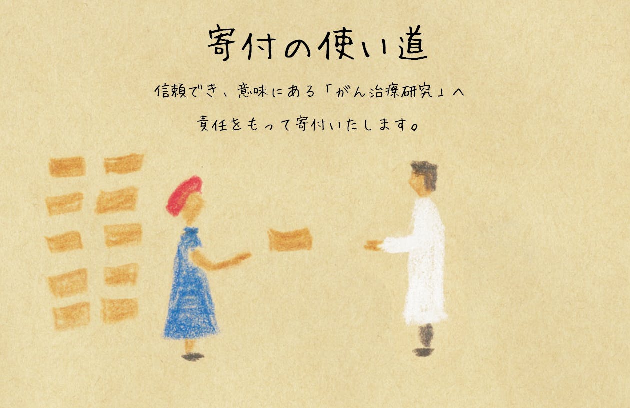 という2つのアクションによって、売り上げの一部が寄付として、がんの治療研究につながっていく仕組みを作ります。