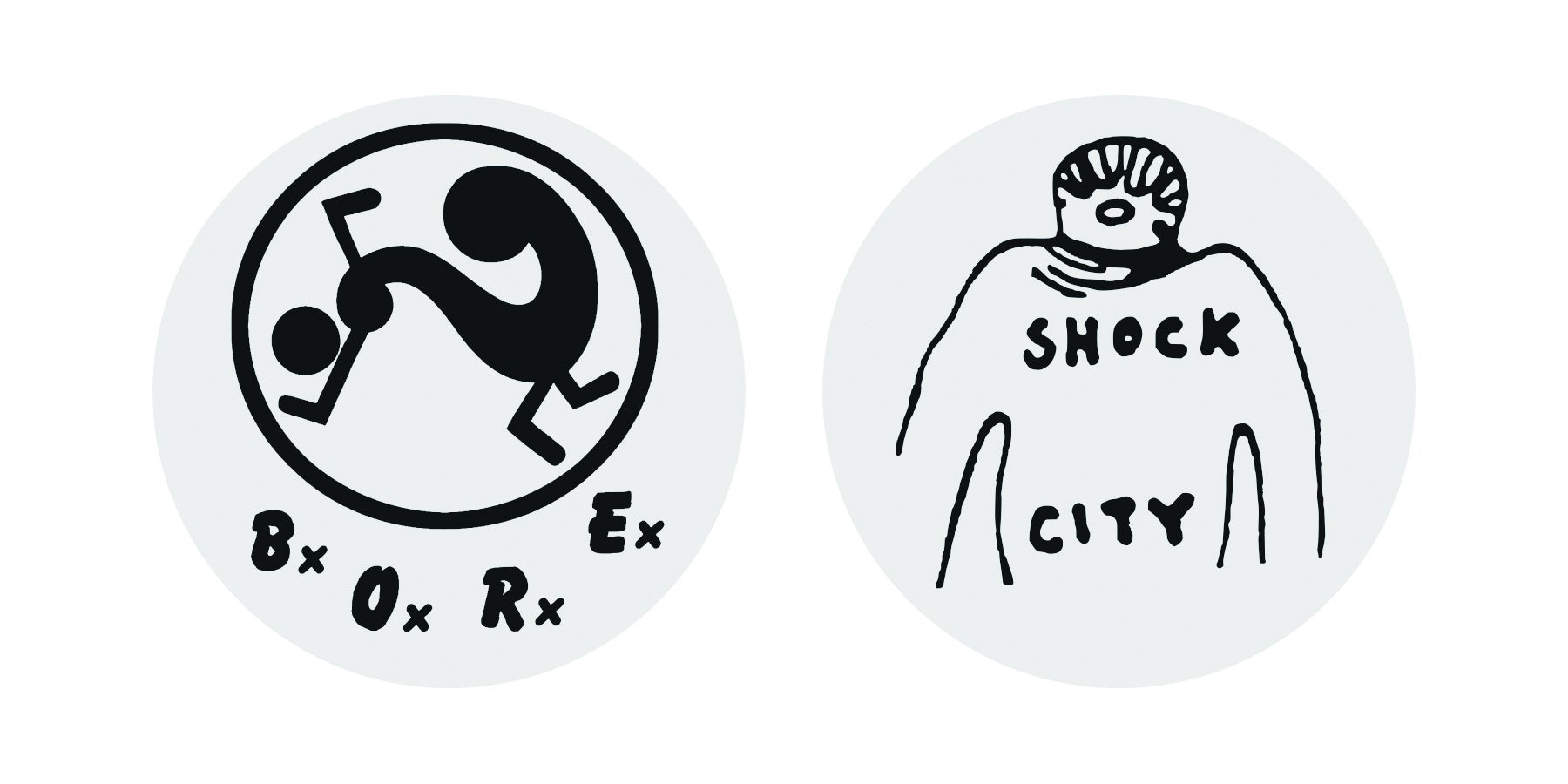 一つはSHOCK CITYロゴ、一つはBOREDOMSロゴ。