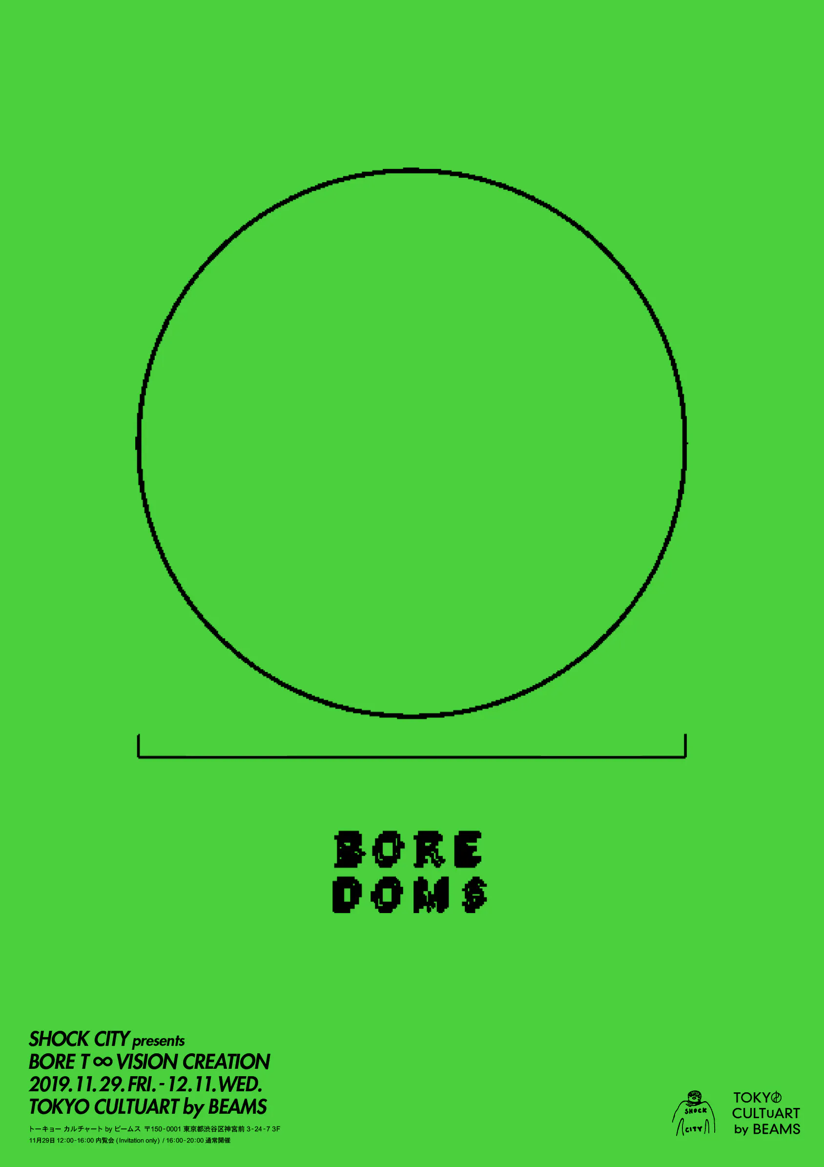 TOKYO CULTUART by BEAMSにて開催される『SHOCK CITY presents BORE T ∞ VISION CREATION』レセプションへのご招待をさせていただきます。
