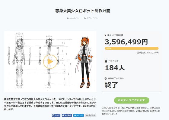 また、このキャンプファイヤーでファンクラブを始めてみようかとも考えています。ニコニコのユーザーチャンネルでもいいかもしれないですが・・人間が主体じゃないロボットのファンクラブ、作ってみたいです。