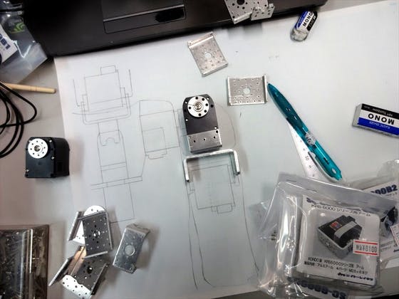大きく変わる可能性はありますが、こんな感じで設計してます。上半身のサーボだけでも全部で5~60万円くらいはしそうなのでまだ全部は買えません(゚Д゚;)