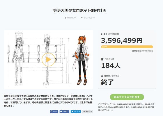 お久しぶりです。ここ1年半ほど取り組んでいた、モーションキャプチャとVRとロボットを用いた、キャラクターアバターシステムが一応完成したので動画にまとめてアップロードしました!要するに現実世界で「俺がミクだ!」ができるシステムです。 レイとは結構関係があって、このシステムで制御に使っているPCはレイ用のになります。動画内でも結構レイ(の絵)と関連事項は出てくるので是非チェックしてください! サーボの配置等共通点は2号機であるミクとかなり多い予定ですので、ここでソフト面をどんどん開発していこうという感じです。レイが要求スペック通り完成すれば、立ったり歩いたりしながらこれができるはずです! ニコニコ http://www.nicovideo.jp/watch/sm32498906 youtube 恐らくですが人型キャラクターに対応した声に変換しつつ視覚もVRで共有して姿かたちも当然キャラクターでモーションキャプチャで全身動かせるっていうシステムは世界で初めてなんじゃないでしょうか! このシステムの開発に当たっては大学の研究室の4年生と、特にpsy39さんという方にプログラム面でほとんど全面的に開発をしていただいています。ここで今一度感謝を示したいと思います。このシステムの開発では僕は主にシステムの開発方針や仕様決めとハード的な見地からのプログラムとの調整やら実機での実験なんかをやってます。 このシステム、VR用のHMDやらをつけて実際に体験してみないと本当のところの感じはわからないと思うのですが、すごい没入感があります。普通の3DCGのVRでもある程度はそうなのですが、見えるものや聞こえる音がリアルタイムのリアル世界のものなので、3DCGのVRとはまた違った現実感のようなものがあります。というか、現実感というかある意味現実でした。 なんというかミクのロボットの体の中に閉じ込められちゃったというか入っちゃったというか、もうこれ俺の体だろみたいなそんな感じで、現状その場から動けないせいか研究室がとても広く見えて世界が果てしなく感じてしまいます。 しかし歩き回れるロボットになれば、また違う世界が見えるはずです。個人的にも、ぜひこのまま歩いて行くのを体感したい・・と思ってます。 ロボットに実装する(主にはソフト的な)システムとしては2号機で現在のところ最大のものになっています。現在も開発継続中ですので今後も何かこれを使ったものを発表するかもしれません。 具体的にこれを何に使うかというと、エンターテイメントロボットでの舞台やステージ上でのインタラクティブな使用を想定して開発しているのですが、最近にわかに流行りだしたバーチャルyoutuberならぬロボットyoutuberみたいな用途にも使えるかも!と最近思い出しました。バーチャルでしか会えないものにリアルで接したい、あるいは中の人がキャラクターの体が欲しい、っていう欲求はきっとあると思うんですよね。そんなのを意識して開発していきたいです。 ではまた!