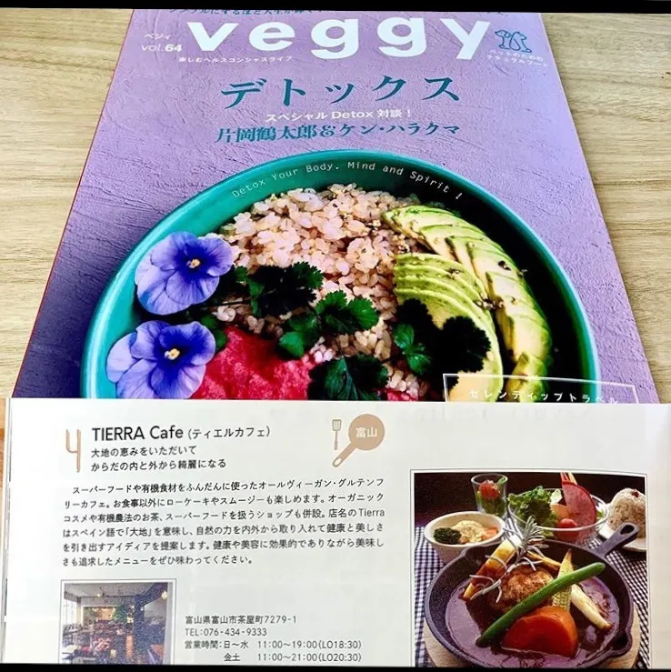 2019/05/10 15:24皆さんこんにちわ!TIERRA Cafeの松浦です!ヴィーガンやベジタリアンの情報が満載の素敵な月刊誌『veggy』にてTIERRA Cafeのお店情報を載せていただきました♪全国紙なんてとっても緊張!笑富山では老舗のSOLさんと一緒に掲載されました☆これからももっとお客様に喜んで頂けるようなお店づくりに励みます!! もっと見るサラダ2