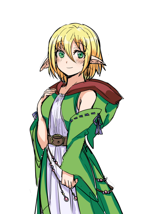 俗に白エルフと呼ばれる種族の女の子で、白い肌に長い耳が特徴です。