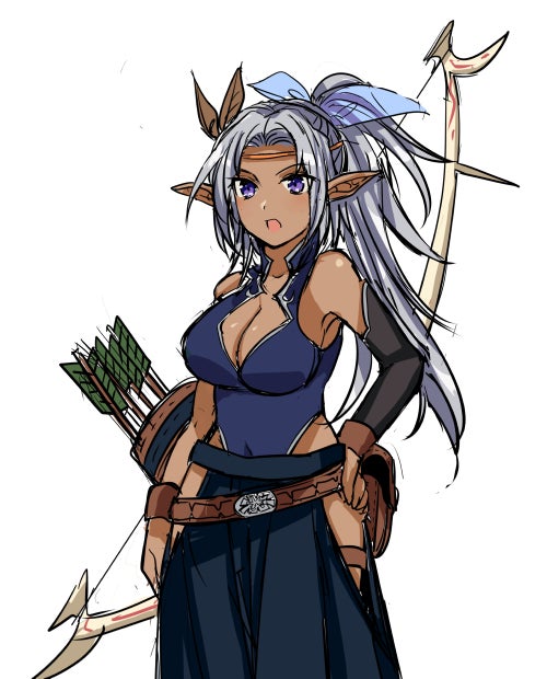 俗に黒エルフと呼ばれる種族の女の子で、褐色の肌に長い耳が特徴です。