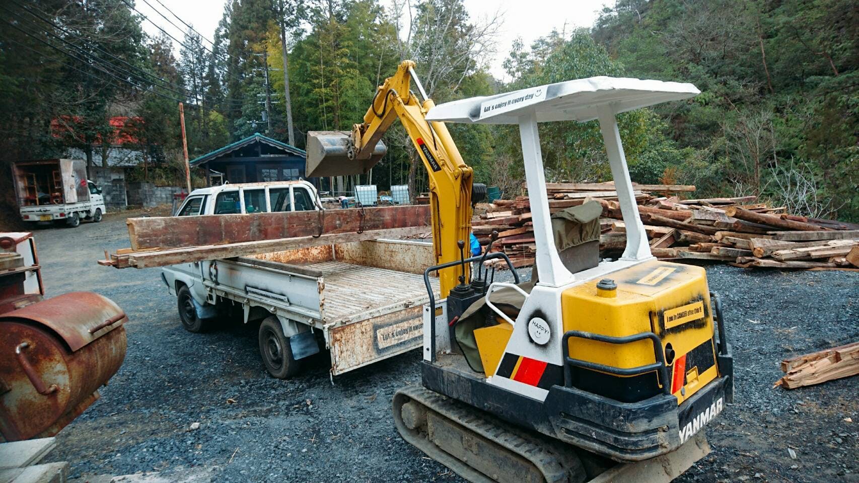 2019/03/17 07:52HAPPY!山で、現在活躍してくれている小型ユンボ!通常は、穴を掘ったり整地したり、石を運んだりなど。ユニック(クレーン)がないから作業がはかどらない。ユンボをなんとか使えないか??知恵をしぼって‼︎ 考えました~‼︎取り外し可能で軽量な【original フォーク】解体したり、材木を挟んだり、柱を建てることもできるように溶接して作りました!ぜひ、こちらの動画もご覧ください٩(^‿^)۶ もっと見る