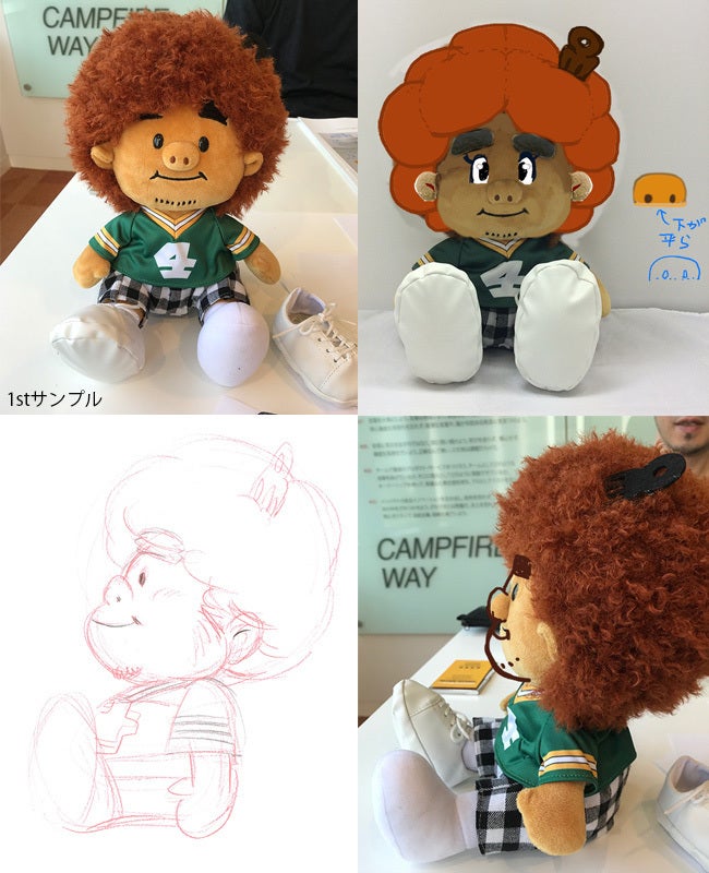 ラフ画は描けるんですが、それをぬいぐるみに変換するときに、こういった形にはならないとか現実的に難しいという点なんかが出てくるんです。そこが物作りの難しさですね。