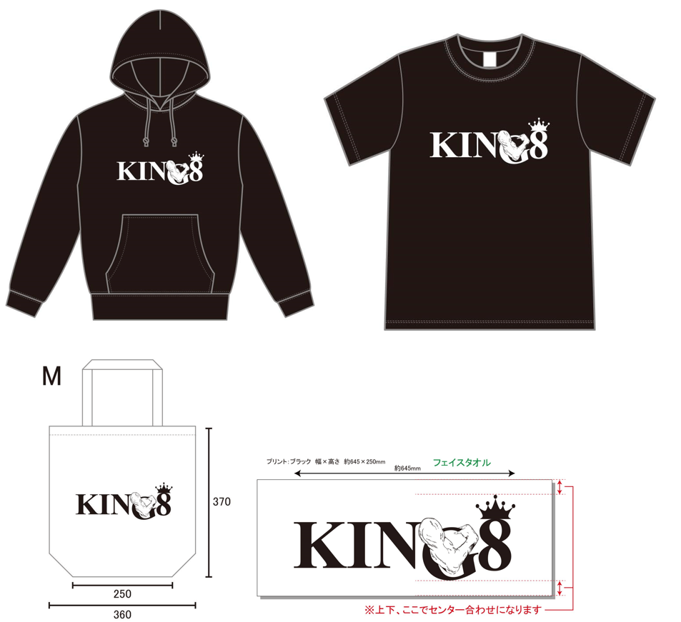 KING8のファンになってください。なお、パーカー、Tシャツを購入の方は、施設利用時に優待をします。