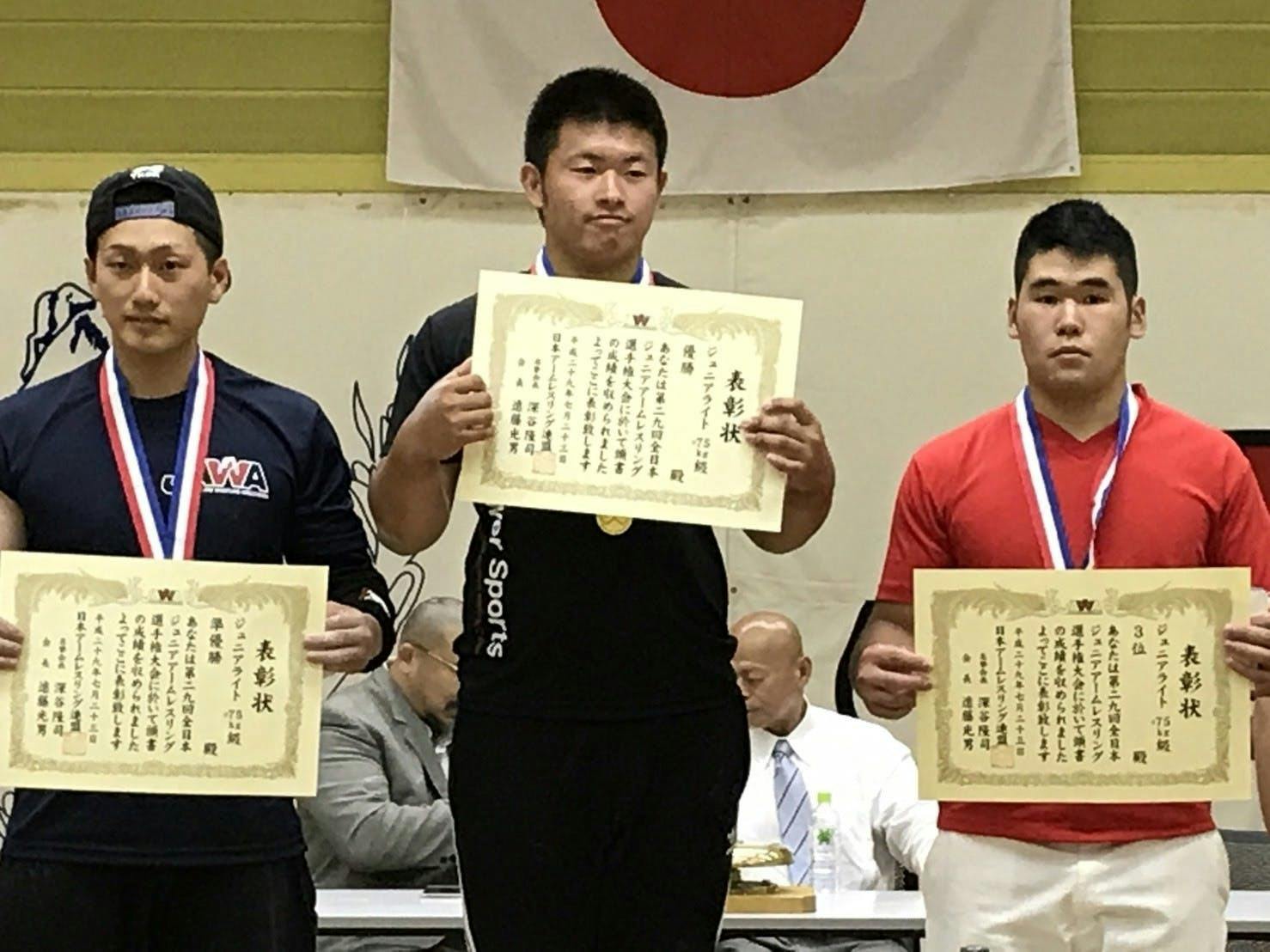 第29回全日本ジュニアアームレスリング選手権大会 ジュニアライト +75㎏級 準優勝、同ジュニアレフト +75㎏級 準優勝