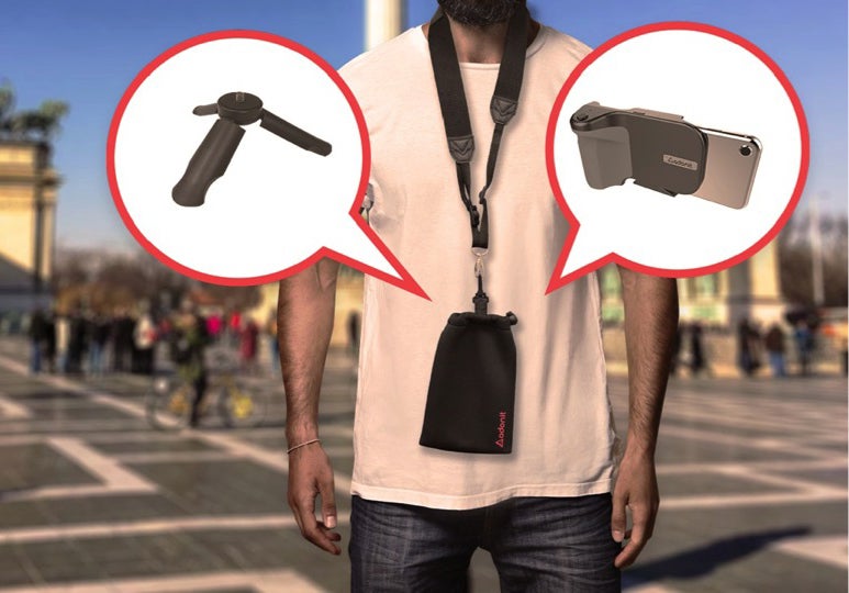 携帯に便利な専用ポーチの他に、ネックストラップとミニ三脚が標準で付属しています。旅行などの際にはネックストラップで持ち運べばシャッターチャンスに瞬時に対応できますし、友達や仲間とのセルフィーも三脚で簡単にできます。