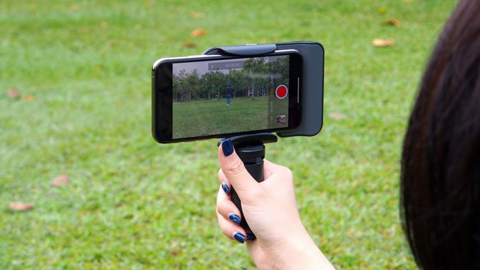 グリップ部分はバッテリーを搭載し最適な重量配分になっているため、縦に設置すればそのままスマホスタンドとしてご利用可能です。無線リモコンと併用してのセルフィーからビデオチャットやライブ配信、動画閲覧などをハンズフリーで楽しんでいただけます。