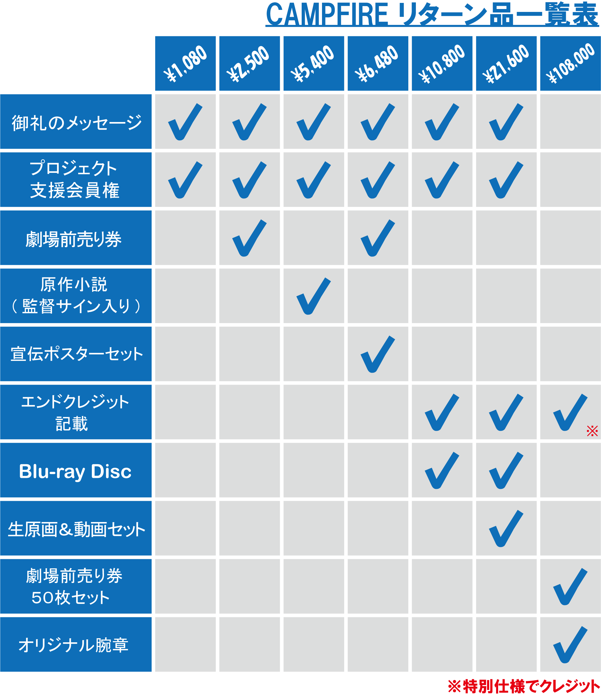 A:リターン内容に『本編エンドロールにお名前をクレジット』が含まれている場合は、支援の際に備考欄へご希望のクレジット名をお書きください。記入がなかった場合はCAMPFIREのユーザーIDをクレジットさせていただきますので、あらかじめご了承ください。