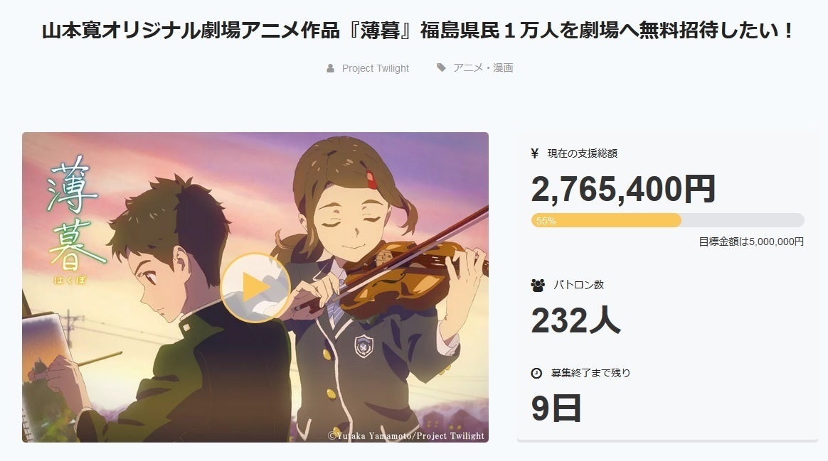 引き続き『薄暮』プロジェクトをよろしくお願いいたします!