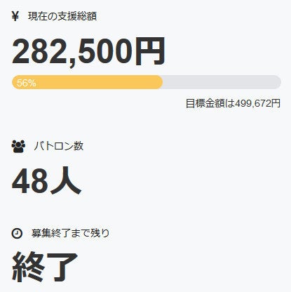(万が一支援がゼロで終わってしまった場合でも滞りなく製作を行える手筈を既に整えております)