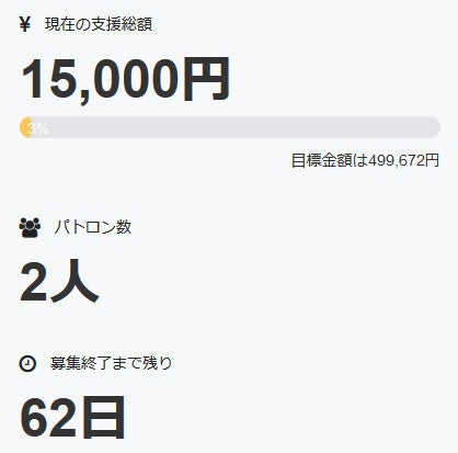 現時点での状況ですが、既に二名の方がパトロンとなって下さり、