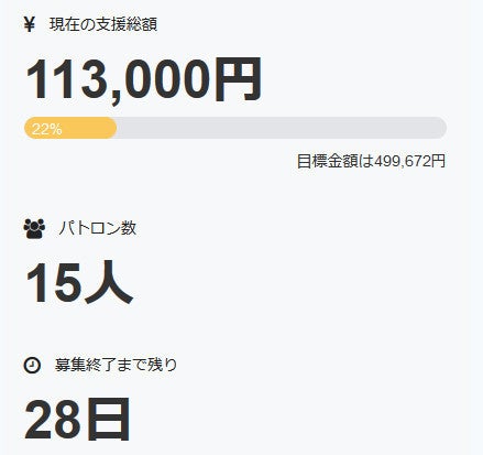本日、新たに一名の方よりご支援を賜りました。