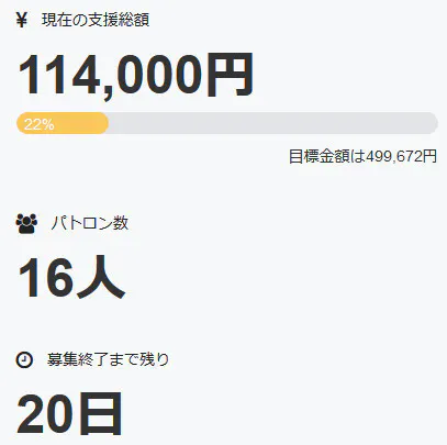 本日、新たに一名の方よりご支援を賜りました。
