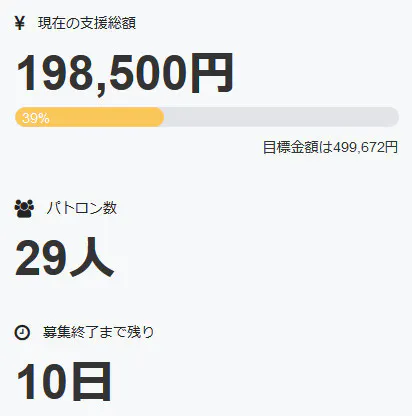 またパトロン様の数は二十九名+直接支援二名の