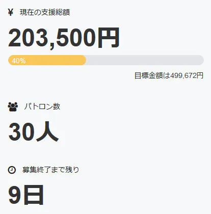 本日、更に一名の方よりご支援を賜りました。
