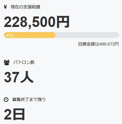 またパトロン様の数は現在、三十七名+直接支援三名の