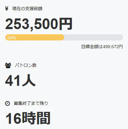 またパトロン様の数は現在、四十一名+直接支援三名の
