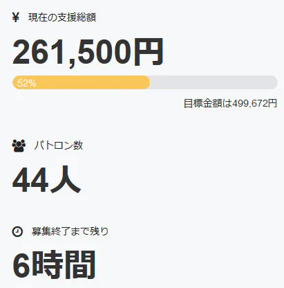 またパトロン様の数は現在、四十四名+直接支援三名の