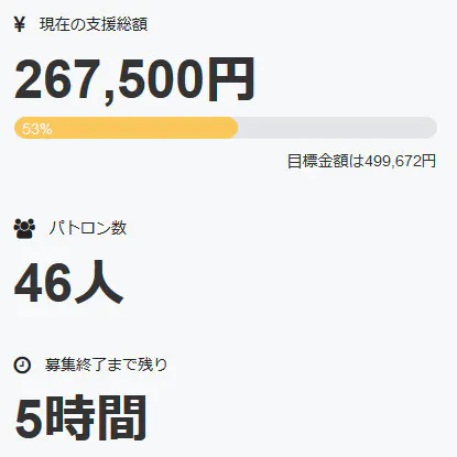 またパトロン様の数は現在、四十六名+直接支援三名の