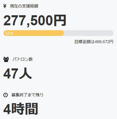 またパトロン様の数は現在、四十七名+直接支援三名の